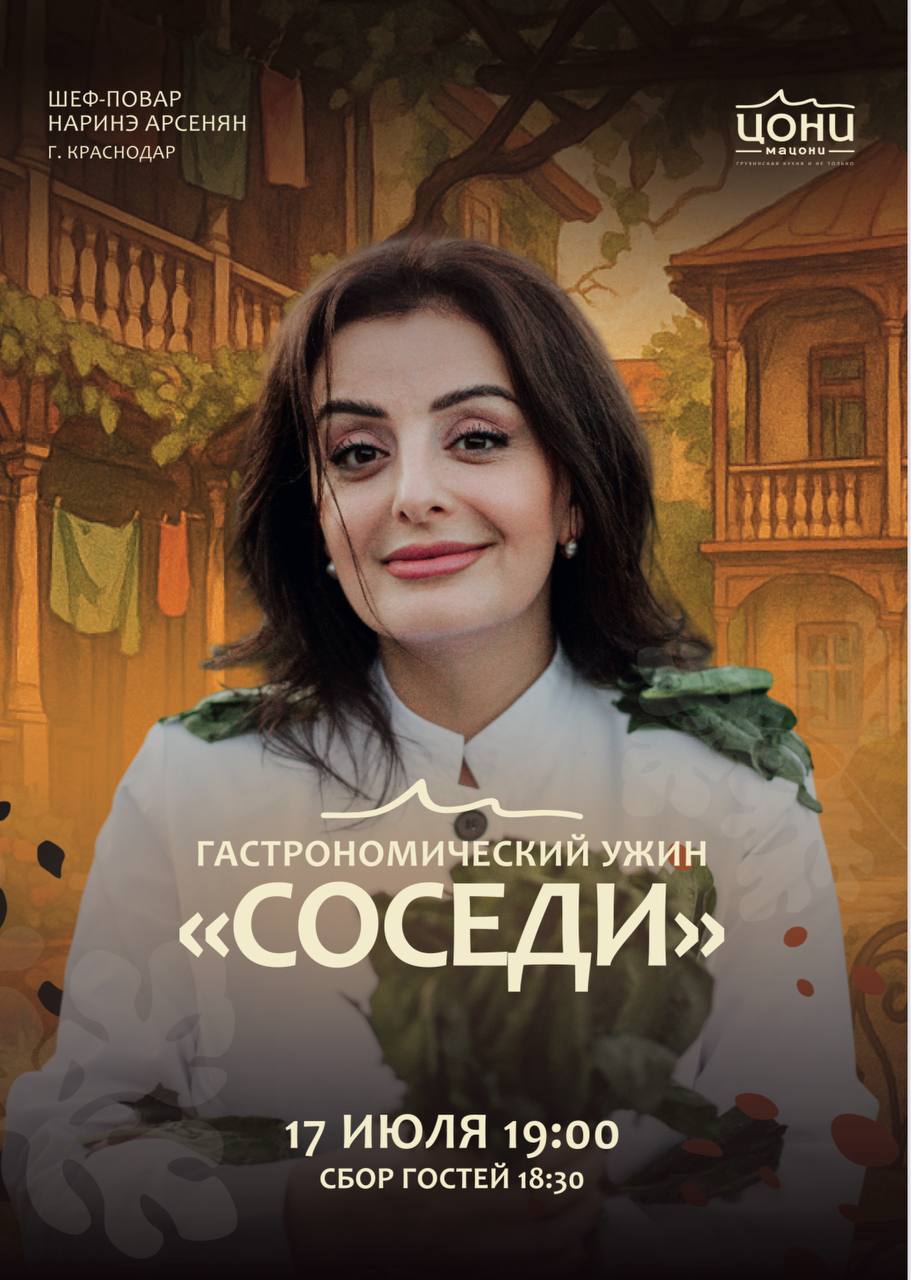 Гастрономический ужин «Соседи» от легендарного шеф-повара Наринэ Арсенян – человека, который вдохнул душу в наш ресторан, оставив неповторимый уют грузинских застолий и домашних угощений.